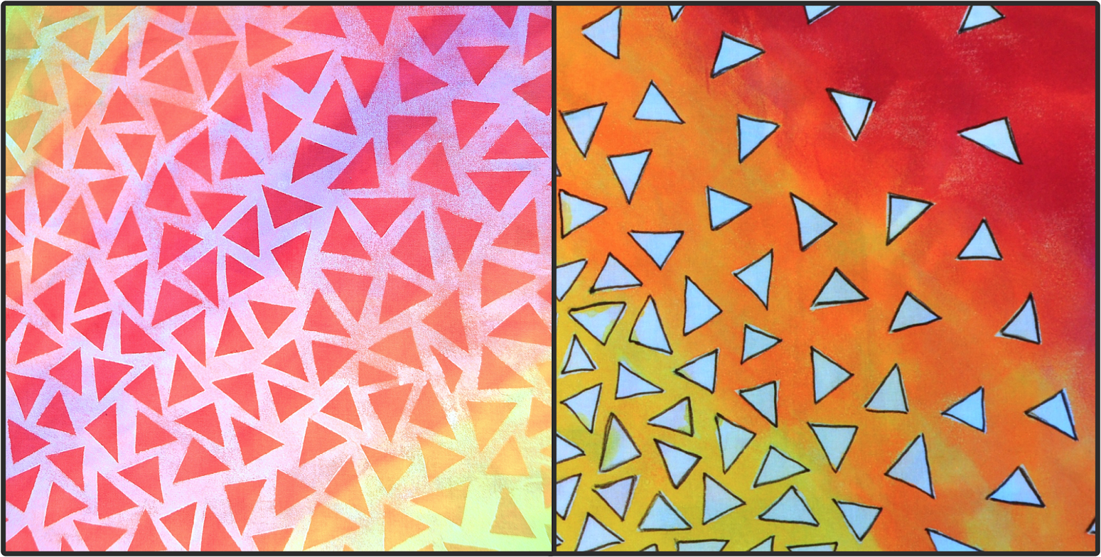 Rechts sind die Dreiecke noch mit schwarzem Permanentmarker umrandet.